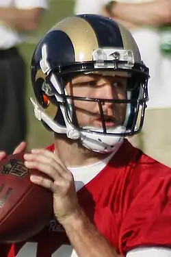 Kellen Vincent Clemens[1] (born June 7, 1983) is an American former professional football player who was a quarterback for 11 seasons in the National Football League (NFL). He played college football for the Oregon Ducks and was selected by the New York Jets in the second round of the 2006 NFL draft. He was also been a member of the Washington Redskins, Houston Texans, St. Louis Rams, and San Diego / Los Angeles Chargers.