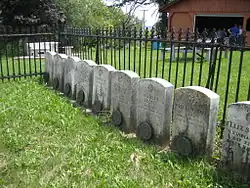 The cemetery contains the graves of Felix St. Vrain, Joseph H. Fowler, William Hale, and Aquila Floyd, all killed during the St. Vrain massacre on May 24, 1832. It also has the graves of those killed in both Battles of Kellogg's Grove, those include: Mecomson, Benjamin Scott and Benjamin McDaniel, killed during the first skirmish and James Black, James B. Bank, Abner Bradford, Marcus Randolph, and Robert Meek, all killed during the second skirmish. Finally, the cemetery contains the graves of three militia men killed during the Battle of Waddam's Grove and two militia men killed at other times during the Black Hawk War.[2]