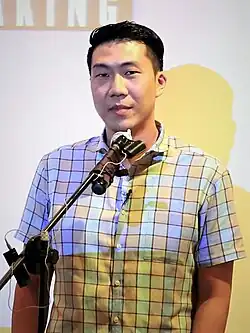 ![]() Kwek speaks at "Telling Stories Live" in 2015 | |