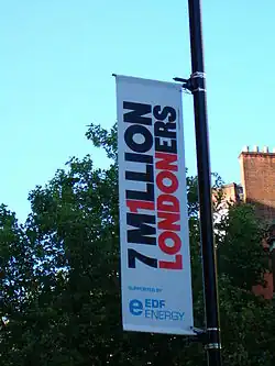 Initially presenting a motion to the GLC Labour groups that they refuse to comply with the judicial decision and continue with the policy regardless, but was out-voted by 32–22; many commentators claimed that Livingstone had only been bluffing in order to save face among the Labour Left.[90] Instead, Livingstone got on board with a campaign known as "Keep Fares Fair" in order to bring about a change in the law that would make the Fares Fair policy legal; an alternate movement, "Can't Pay, Won't Pay", accused Livingstone of being a sell-out and insisted that the GLC proceed with its policies regardless of their legality.[91] One aspect of the London Transport reforms was however maintained; the new system of flat fares within ticket zones, and the inter-modal Travelcard ticket continues as the basis of the ticketing system.[92] The GLC then put together new measures in the hope of reducing London Transport fares by the more modest amount of 25%, taking them back to roughly the price that they were when Livingstone's administration took office; it was ruled legal in January 1983, and subsequently implemented.[93]