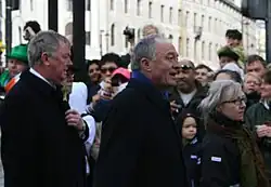 On 10 October, the IRA bombed London's Chelsea Barracks, killing 2 and injuring 40. Denouncing the attack, Livingstone informed members of the Cambridge University Tory Reform Group that it was a misunderstanding to view the IRA as "criminals or lunatics" because of their political motives and that "violence will recur again and again as long as we are in Ireland." Mainstream press criticised him for these comments, with The Sun labeling him "the most odious man in Britain". In response, Livingstone proclaimed that the press coverage had been "ill-founded, utterly out of context and distorted", reiterating his opposition both to IRA attacks and British rule in Northern Ireland.[119] Anti-Livingstone pressure mounted and on 15 October he was attacked in the street by members of unionist militia, The Friends of Ulster. In a second incident, Livingstone was attacked by far right skinheads shouting "commie bastard" at the Three Horseshoes Pub in Hampstead.[120] Known as "Green Ken" among Ulster Unionists, Unionist paramilitary Michael Stone of the Ulster Defence Association plotted to kill Livingstone, only abandoning the plan when he became convinced that the security services were monitoring him.[121][122][123]