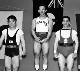 Kenji Onuma (Japanese: 大沼 賢治, born 12 March 1931) is a Japanese retired lightweight weightlifter who won a silver medal at the 1958 Asian Games. In that same year, he set an unofficial world record in the clean and jerk. Onuma placed fourth in weightlifting in the 1956 Summer Olympics and competed in weightlifting in the 1960 Summer Olympics.[1][2]