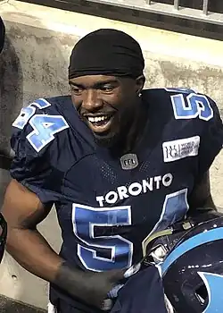 ![]() Gilchrist before a Toronto Argonauts game in 2019. | |