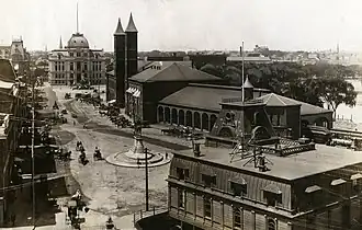 In 1903, the Federal Building was constructed facing City Hall. From 1920 to 1948, the plaza was circled by trolley tracks.[3]