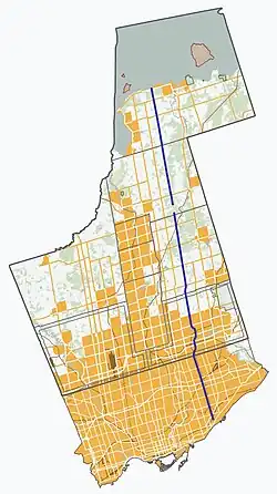 Kennedy Road is a major north-south arterial road in Toronto and York Region, Ontario, Canada. It has a main southern section running 43.8 km north from Highview Avenue in Toronto to Davis Drive at the boundary of Whitchurch-Stouffville and East Gwillimbury in York,[1] and a 24.5 km northern section from Harold Road to Lake Simcoe in Georgina.[2]