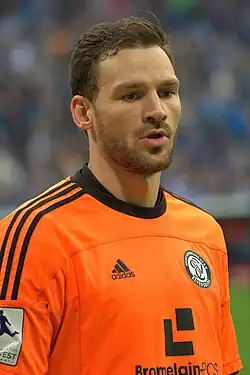 Kenneth Kronholm (born October 14, 1985) is an American former professional soccer player who played as a goalkeeper. The son of an American father and a German mother, Kenneth Kronholm was born in Fort Belvoir, Virginia but grew up mostly in Heidelberg, Germany. Following a long career in Germany, he transferred to the Major League Soccer side Chicago Fire FC in 2019.[1] Following the 2021 season, Kronholm's contract option was declined by Chicago.[2]