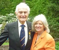 Since 2012 Mayhew visited the Netherlands several times and was active as a member of the Military William Order. In May 2013 he was an honorary guest at the annual Liberation Day ceremony in Wageningen,[12] and visited the Overloon War Museum.[13] In May 2014 Mayhew opened the annual Liberation Day celebrations in Wageningen, attended by over 1800 veterans and 120,000 visitors.[14] Later that month Mayhew baptised tulips in London, a gift from the Netherlands to mark the 70-year anniversary of Operation Market Garden, attended by representatives from the Dutch, British, Australian, Canadian, New Zealand, Polish and US armed forces.[15][16] On 6 December 2014 he was an honorary guest at the knighting of Gijs Tuinman, one of only two knights present, out of only four alive at the time. The event, which was broadcast live on Dutch national television, saw Mayhew welcoming Tuinman as a new member of the order.[17] In honour of his 100th birthday, King Willem-Alexander of the Netherlands sent Mayhew a congratulatory letter in January 2017, which was delivered by the Dutch ambassador to the United Kingdom.[18] Mayhew was a guest at Buckingham Palace during the state visit of King Willem-Alexander of the Netherlands and Queen Máxima to the United Kingdom in October 2018.[19] In 2018 a book was published about his life with an introduction by king Willem-Alexander of the Netherlands.[20]