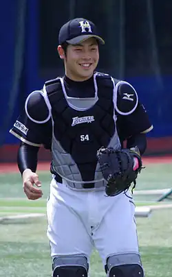 Kensuke Kondoh (近藤 健介, Kondō Kensuke) is a Japanese professional baseball catcher, outfielder, and third baseman for the Fukuoka SoftBank Hawks of Nippon Professional Baseball (NPB). He has previously played in NPB for the Hokkaido Nippon-Ham Fighters.[1]