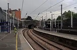 From May 1878 to September 1880 the MR Super Outer Circle service ran through the station, from St. Pancras to Earl's Court Underground station via Cricklewood and South Acton.[9] The main line station was rebuilt in 1983, nothing of the original station building remains. The separate London Underground station was opened on 22 June 1907 by the Charing Cross, Euston and Hampstead Railway (CCE&HR), a precursor of the Northern line.[10] The station was designed by Leslie Green with the ox-blood red glazed terracotta façade and the semi-circular windows at first floor level common to most of the original stations on the CCE&HR and its two associated railways, the Baker Street and Waterloo Railway and Great Northern, Piccadilly and Brompton Railway which opened the previous year. When Kentish Town station opened the next CCE&HR station south was South Kentish Town but that station closed in 1924 due to low usage.[11] Gospel Oak station on the North London line opened in 1860 as "Kentish Town" but was given its present name in 1867 when the North London Railway opened Kentish Town West. It was the junction of services to Barking until 1981 when services were diverted to terminate and start from Gospel Oak. The spur line to Junction Road Junction was then closed, the track was removed and the trackbed has been sold for industrial use.