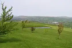 Carus Green Golf Club was established in 1997 when farmer Fred Downham converted his farmland into an 18- hole golf course.[14] The multimillion-pound development created 5 new jobs and has since attracted over 100 members.[15] The Par 70 course measures 5860 yards, and the River Kent, Mint and River Sprint meander across the course.[16] The course is managed by Graham Curtin.[15] Several artefacts were unearthed during the building of the golf course.[14]