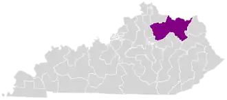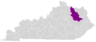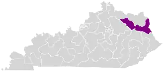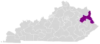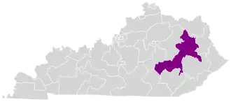 1984–1993 Breathitt, Elliott, Lee, Magoffin, Menifee, Morgan, Owsley, Rowan, and Wolfe Counties. |