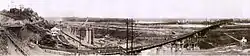 Kentucky Dam is a hydroelectric dam on the Tennessee River on the county line between Livingston and Marshall counties in the U.S. state of Kentucky. The dam is the lowermost of nine dams on the river owned and operated by the Tennessee Valley Authority, which built the dam in the late 1930s and early 1940s to improve navigation on the lower part of the river and reduce flooding on the lower Ohio and Mississippi rivers. It was a major project initiated during the New Deal of President Franklin D. Roosevelt's administration, to invest in infrastructure to benefit the country. The dam impounds the Kentucky Lake of 160,000 acres (65,000 ha), which is the largest of TVA's reservoirs and the largest artificial lake by area in the Eastern United States.[1] It was designated as an National Historic Civil Engineering Landmark by the American Society of Civil Engineers in 1996 and listed on the National Register of Historic Places in 2017.[2]