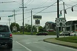 An extension towards the General Electric Appliance Park was completed in 2005, connecting the existing Hurstborne Parkway with Fern Valley Road (then-Kentucky Route 1631), creating another loop around the southeastern end of Louisville located midway between Interstate 264 to the north and Interstate 265 to the south.[2] KY 1747 was then extended westward along the length of Fern Valley Road to its current terminus at Grade Lane, replacing KY 1631, which was then reassigned farther downtown.[3]