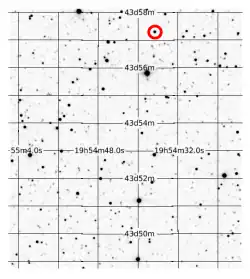 - ^ a b VizieR Detailed Page for 2MASS 19543665+4357180, "This publication makes use of data products from the Two Micron All Sky Survey, which is a joint project of the University of Massachusetts and the Infrared Processing and Analysis Center/California Institute of Technology, funded by the National Aeronautics and Space Administration and the National Science Foundation."