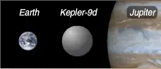 | Kepler-9d with Earth and Jupiter compared to size. | |