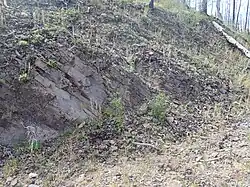 The Bearhead Rhyolite is a thick stack of rhyolite tuffs, flows, domes, and associated shallow intrusions exposed from the northeastern Valles caldera rim to north of Cochiti Pueblo. It is named for exposures on Bearhead Peak (35°43′30″N 106°28′59″W / 35.725°N 106.483°W), one of the major source vents of the formation. The formation ranges in age from 7.1 to 6.5 million years. High-silica volcanism shifted to the north around 7.5 million years ago, producing the separation between the Canovas Canyon Rhyolite and the Bearhead Rhyolite.[7]
