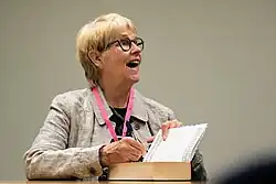 In 2008, Juva became the first translator in Finland to be awarded an "artist professorship".[5] She taught from 2008 to 2013, retiring in 2014 with a pension as a State Artist. Juva has translated over 100 literary works in the course of her career,[10] including: L. Frank Baum's The Wonderful Wizard of Oz, Charles Dickens' Bleak House and Nicholas Nickleby, Henry James' Washington Square, and Alice Walker's The Color Purple. She has also produced numerous translations specifically adapted to theatrical and radio performance.[22] Fascinated with Jane Austen, Juva completed a translation of Pride and Prejudice in 2013.[13] In 2014, she was inducted into the Hall of Fame of the European Science Fiction Society for her translation work[23] and was granted an honorary doctorate in philosophy by the University of Eastern Finland's Joensuu campus.[13]