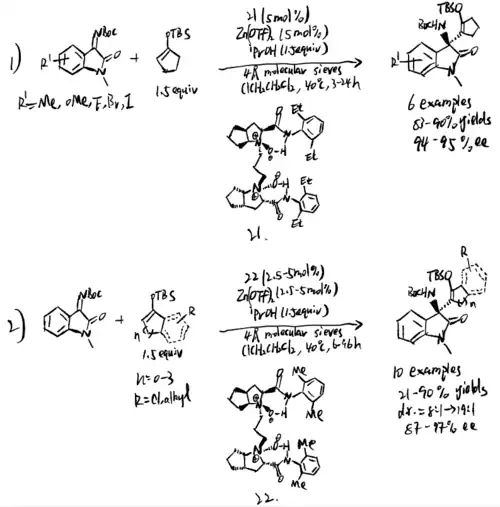 - ^ Sawa, Masanao; Miyazaki, Shotaro; Yonesaki, Ryohei; Morimoto, Hiroyuki; Ohshima, Takashi (2018-08-14). "Catalytic Enantioselective Decarboxylative Mannich-Type Reaction of N-Unprotected Isatin-Derived Ketimines". Organic Letters. 20 (17): 5393–5397. doi:10.1021/acs.orglett.8b02306. ISSN 1523-7060. PMID 30106593. S2CID 52007498.