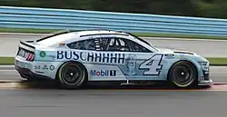 Harvick began the 2021 Cup season with three consecutive top-ten finishes and was one of two drivers to do that, the other being Michael McDowell. His streak ended in the fourth race at Las Vegas when he finished twentieth after starting on the pole.[47] Harvick finished 37th at the inaugural Circuit of the Americas race after Bubba Wallace collided with him under rainy conditions, sustaining his first DNF since the 2019 Bass Pro Shops NRA Night Race. He, later on, criticized NASCAR for allowing the race to proceed with poor visibility.[48] Despite scoring no wins for the first time since 2009, Harvick managed to make the playoffs with his consistency.[49]