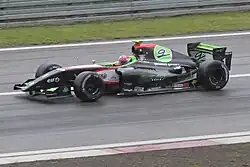 Korjus served as Lotus F1's testing and reserve driver at the 2012 Italian Grand Prix.[13] With regular driver Romain Grosjean serving a one-race ban for causing a serious accident at the Belgian Grand Prix,[14] the team promoted regular test driver Jérôme d'Ambrosio to fill Grosjean's seat for the race,[15] and Korjus was recruited to fill in the vacant reserve driver position.