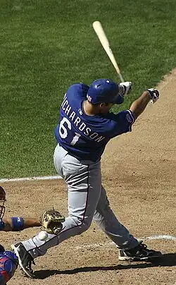 Richardson attended Gonzaga University, where he played college baseball for the Bulldogs from 2001-2002.[1] Richardson was signed as an undrafted free agent by the Texas Rangers in 2002. He made his MLB debut against Francisco Liriano and the Minnesota Twins, going 2 for 4. Richardson appeared in four games for the Rangers in 2009, but was released by the club at the end of the season.[2]