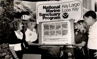 In 1986, the Key Largo National Marine Sanctuary teamed up with the Looe Key National Marine Sanctuary to hold a joint underwater photography contest.[13] In the 1980s, NOAA worked with the Miami Herald to produce an article on the high rate of boat groundings in the two sanctuaries and with United Press International to produce a feature article on the impact of underwater diving on coral reefs.[13] Both articles were part of an effort to draw the public's attention to the detrimental effect of human activities on the reef systems in the Florida Keys.[13]