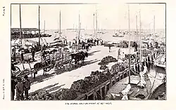 In 1849, the first sponge shipment arrived in New York from Key West.[7] There was great demand for Key West sponges and the industry created 1,200 jobs on 350 sponge fishing vessels, known as "hook boats", based in the Key West Bight.[8] Business dropped off significantly when local waters became depleted and disappeared altogether with the arrival and popularity of artificial sponges.