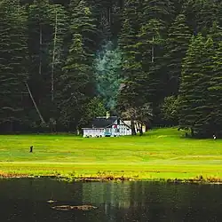 Khajjiar is a hill station near the town of Chamba in Chamba district of Himachal Pradesh, India. Located approximately 24 kilometres (15 mi) from Dalhousie, it lies on a small plateau about 2,000 meters (6,500 feet) above sea level in the foothills of the Dhauladhar ranges in the Western Himalayas. It is also part of the Kalatop Khajjiar Sanctuary.[2]