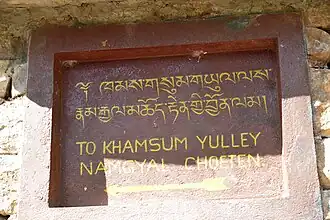 Khamsum Yulley Namgyal Chörten (Dzongkha: ཁམས་གསུམ་གཡུལ་ལས་རྣམ་རྒྱལ་མཆོད་རྟེན, also known as Nyizergang Chörten and Punakha Zangdopelri) — chörten in the Punakha District, Bhutan.