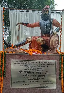 - ^ "मुख्यमंत्री मनोहर लाल शनिवार को खांडा में सेहरी खांडा शौर्य दिवस में की शिरकत -बाबा बंदा बहादुर की मूर्ति का किया अनावरण - City Tehelka News". City Tehelka News. 3 November 2018. Retrieved 4 November 2018.