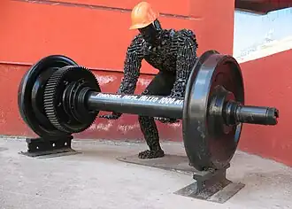 At the beginning of August 2009, in the lobby of the Universytet station, on the 34th anniversary of the completion of its construction, a monument to the metro builder was unveiled, immediately nicknamed the "Tin Woodman". The monument represents a post-constructivist "worker" made from scraps of metal and springs, pierced by a rail, wearing an orange construction helmet. According to the then director of the metro, Sergey Museev, the sculpture "symbolizes the hard work of metro residents who have been working underground for years". According to passengers, this character "only scares children". On 3 February 2010, the monument was moved to the metro control building.