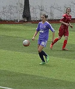 She joined the Turkish club Trabzonspor July 16, 2009 right before the qualification matches of the 2009–10 UEFA Women's Champions League. She scored a goal in her first match in the tournament against the Slovene team ŽNK Krka.[5] She participated also in the two following matches.[6][7] After playing one season and scoring nine goals in 17 league matches, she transferred the rival team Trabzon İdmanocağı in the same city. She played three seasons capping 51 times and netting 34 goals. For the 2012–13 season, she moved to another Black Sea club, Kdz. Ereğlispor, where she continues to play.[1] She transferred to the Istanbul-based club Ataşehr Belediyespor in the second half of the 2016–17 season.[1]