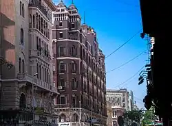 One of Wust al-Balad's main streets is lined with vintage architecture from the late 19th and early 20th-century European Beaux-Arts and Egyptian—Islamic—Moorish Revival styles.