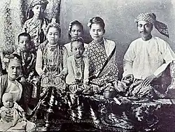 After the exile of King Thibaw to Ratnagiri, his family moved to India in 1911 and continued serving the King. He worked as Thibaw's assistant.[7] While he was in service, Thibaw's second daughter, Myat Phaya Lat, fell in love with him and they eloped on 11 October 1916 due to the disapproval of their parents.[2] They legally married on 20 February 1917 at the Collector's Bungalow, Ratnagiri, Bombay, India. They settled in Kalimpong and started raising dairy cows.[5] They had no children and adopted the son of her Nepalese maidservant, Maung Lu Gyi.[8][9] Queen Supayalat refused to see the daughter when she eloped with Khin Maung Lat.[10] However Supayalat later met her daughter but refused to meet Khin Maung Lat.[11]