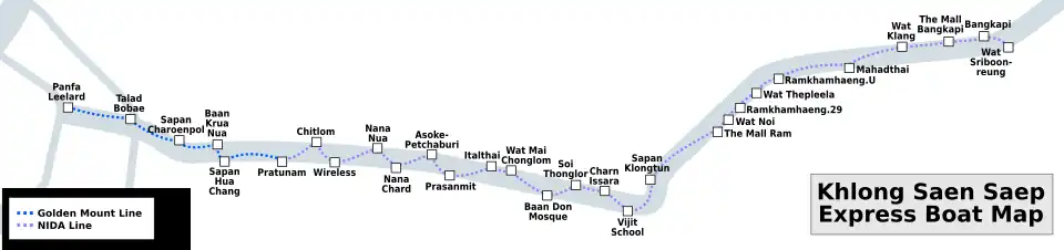 5. ^ "NIDA Line & Golden Mount Line". Khlong Saep Saen Express Boat. Archived from the original on 23 October 2017. Retrieved 26 January 2017.