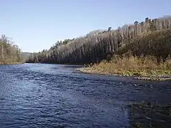 It rises on the western slope of the Northern Sikhote-Alin. The Khor is 453 kilometres (281 mi) long, with a drainage basin of 24,700 square kilometres (9,500 sq mi).[1] The urban-type settlement Khor is located on the river bank near the mouth.