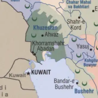 - ^ Other modern historians—such as P. Luft and E.J. van Donzel—also only considers Arabestan to have been used for the western part of Khuzestan during this period.[17][18] The Iranologist Willem Floor includes both Arabestan and Khuzestan separately amongst the jurisdictions of the Safavid realm.[19]