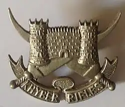 The badge of the Corps comprised two crossed Afghan daggers with the words KHYBER above and RIFLES below.