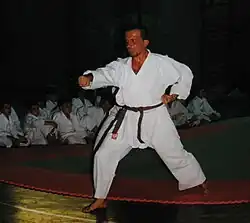 Students of Japanese martial arts such as aikido, karate, kobudo, kendo, taido or judo (or related arts such as taiko drumming) use kiai to startle an opponent, intimidate, express confidence or express victory.[3] In kendo, for example, a point is only given by the Shinpan (referees) if the hit is accompanied by a strong, convincing kiai. A kiai can also be used besides tightening the core muscles to prevent damage to the stomach. The physical aspects of a kiai are often used to teach a student proper breathing technique when executing an attack which is a common trait adopted by many other foreign martial arts and combat sports. A kiai is also sometimes used to intimidate.