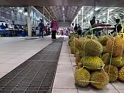 The Gadong Wet Market (Malay: Pasar Gadong) is one of the main marketplaces in the city selling fresh meat and produce. The wet market becomes a flower market on Friday and Sunday mornings (pasar bunga). The market is open from 6 am to 3 pm on Monday through Thursday, on Saturday, and on Sunday. On Friday, it is open from 6 am to noon and from 2 pm to 3 pm.[14]