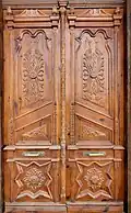 The architect of the mosque was the skilled craftsman Rahim and his father.[2] During the construction of the mosque, a minaret, known as Guldeste, was also built nearby.[3] The walls of the mosque are 26 m (85 ft) long, 10 m (33 ft) wide, 8 m (26 ft) high, and 1 m (3 ft 3 in) thick.[8] The mosque can accommodate up to 250 worshippers simultaneously.[9] Red bricks, local wood materials, and tiles were used in the construction of the mosque. The left door of the mosque was prepared by Mahammadhasan Naccar, a member of the "Fovcul-fusaha" literary circle active in Lankaran in the 19th century, while the right door was prepared by the master craftsman Mahammadali.[3][10]