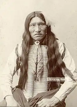 Kicking Bear (Lakota: Matȟó Wanáȟtaka [maˈtˣɔ waˈnaχtaka];[1] March 18, 1845 – May 28, 1904) was an Oglala Lakota who became a band chief of the Miniconjou Lakota Sioux. He fought in several battles with his brother, Flying Hawk, and first cousin, Crazy Horse, during the War for the Black Hills, including the Battle of the Greasy Grass.