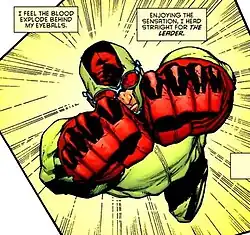 Reggie Meyer is part of a family who gained superpowers from the Amazo virus and protect their hometown of Providence, Rhode Island as a team. Reggie is more inclined to being a bully than he ever was a good Samaritan, and his particular household is prone to infighting even before they obtained superpowers.[3] An android created by Lex Luthor manipulates Reggie into obtaining Amazo armor, which enhances his powers and enables him to become a supervillain.[4][5]