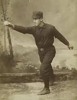 Gleason played two seasons in the minor leagues of northern Pennsylvania. In 1886, with Williamsport of the Pennsylvania State League, he batted .355 and stole 20 bases in 36 games.[2] Gleason debuted as a pitcher with the Philadelphia Quakers on April 20, 1888, after impressing Hall of Fame manager Harry Wright during an exhibition game against the University of Pennsylvania.[1] After enjoying mixed success as a pitcher in 1888 and 1889, Gleason opted to stay in the National League under Wright instead of moving to the Players' League set up in 1890.[1] His 1890 season was his best as a pitcher, with 38 wins, a 2.63 ERA, 54 complete games, and 506 innings pitched.[1][3]