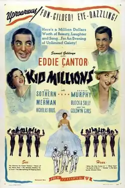 Kid Millions is a 1934 American musical film directed by Roy Del Ruth, produced by Samuel Goldwyn Productions, and starring Eddie Cantor. Its elaborate "Ice Cream Fantasy Finale" production number was filmed in three-strip Technicolor, one of the earliest uses of that process in a feature-length film.