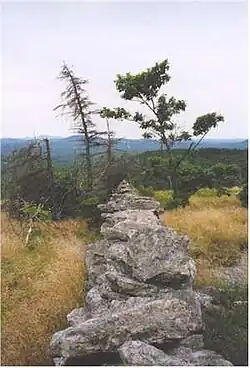 Kidder Mountain is a 1,805 feet (550 m) summit located in south-central New Hampshire within the Wapack Range of mountains. It lies within New Ipswich and Temple, New Hampshire just off the 22 mi (35 km) Wapack Trail on a 0.9-mile (1.4 km) side trail. Temple Mountain is located directly to the north along the Wapack ridgeline; Barrett Mountain to the south. The summit of the mountain is mostly open and offers expansive views from old pastures.