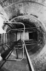 At this location, Neilson removed Lesley's gag after telling her to remain quiet and that nobody could hear her scream; he then cut the bindings on her wrists, then told her to remove her dressing gown to dry herself. He then placed a hood over her head and tethered her by the neck to the side of the shaft via a wire noose attached to cord 5 feet (1.5 m) in length.[6] A mattress, torch and a sleeping bag were already upon the ledge and according to some sources, Neilson gave the naked teenager a flask of soup, a bottle of brandy, a small puzzle, and six paperback books to occupy her time and insulate her against the frigid temperature.[22]