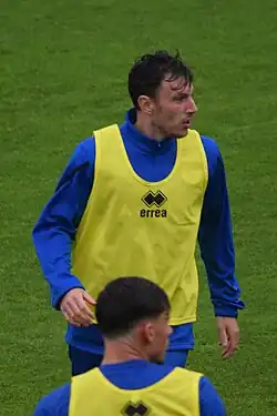 Wallace warming up for Hartlepool United in 2023