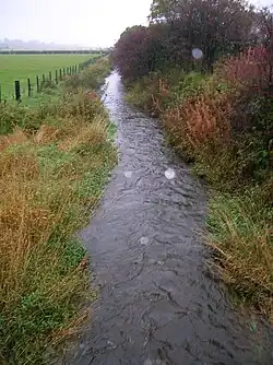The solid geology in the lower catchment area is carboniferous limestone. Higher ground to the North and South is mainly basalt. The drift geology includes a layer of peat to the North and boulder clay and lake alluvium over the lower catchment zone. Soils are alluvium to the North and Southeast, whilst to the East and West poorly drained non-calcareous gley soils predominate.[19]