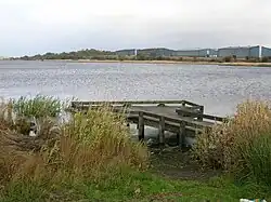 Lochside Farm was present on the north-west side of the loch in the 19th century, lying below and to the south-west of Lochrig, later Lochridge, as shown on the 19th century OS map; a 'Flax Pond' for rhetting flax, as part of the process of linen manufacture, is also shown nearby on the loch bank; it is now visible as a wet area dominated by rushes. The firm of William & James Knox, linen thread manufacturers, established as early as 1788, are still based in Kilbirnie. Scotland was amongst the first producers of flax.[16] The road running down to the loch here from Baxter Head became known locally as the 'Shanks-McEwan Road' after the company that was contracted to remove the old steelwork's slag heaps.